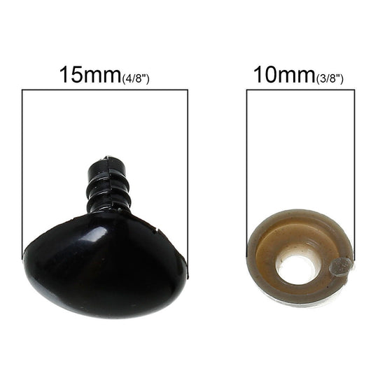 DO013 - 5 pairs (10 pieces) Black Safety Noses for Doll and Toy Making - 15mm - Backs for a Stronger Hold!