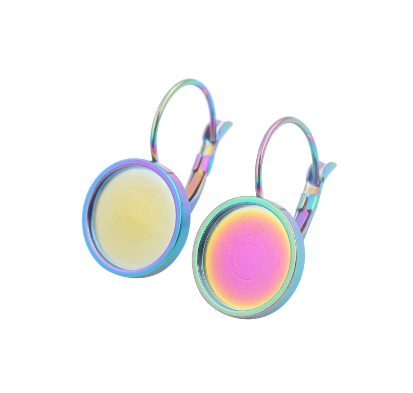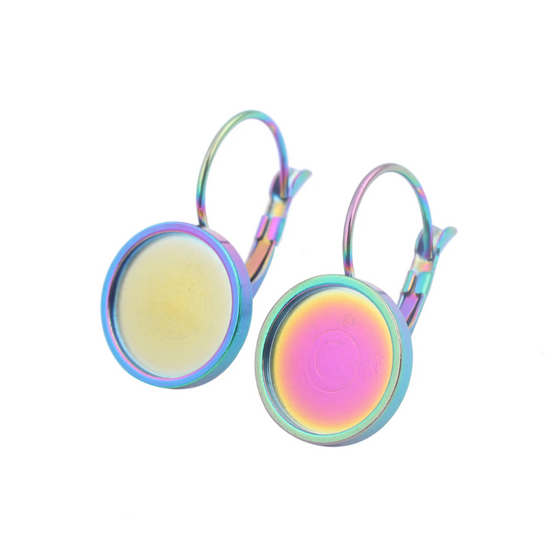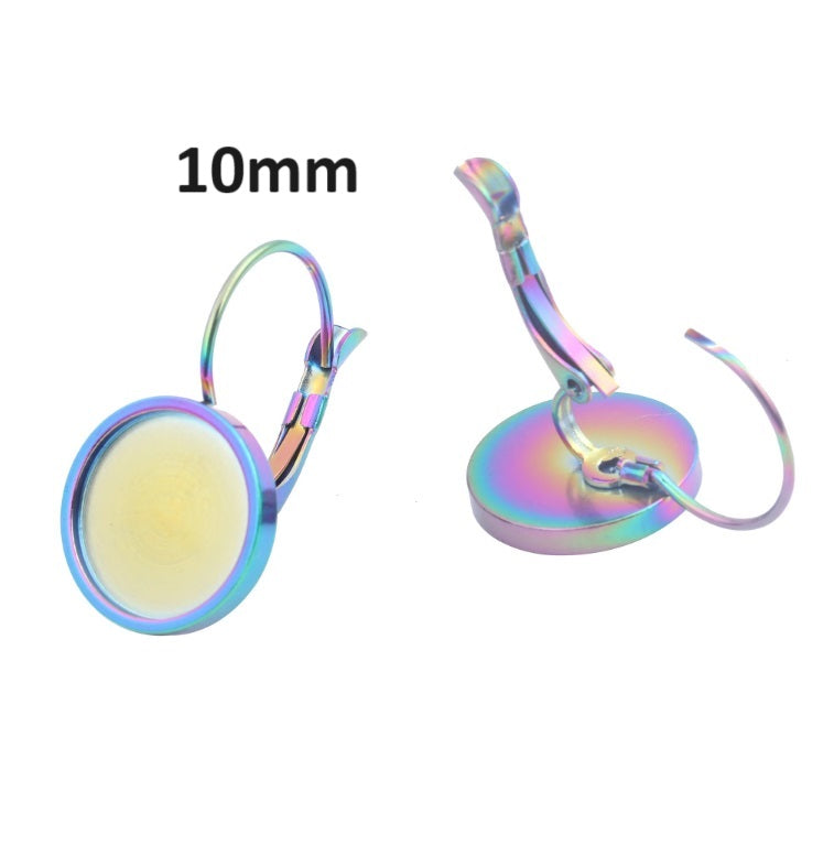 E657 - 10 pcs. (5 pairs) 304 Stainless Steel Rainbow Earring Clips Settings Lever Back Bezels Cabochons - 10mm Glue Pad Setting - Flat Design