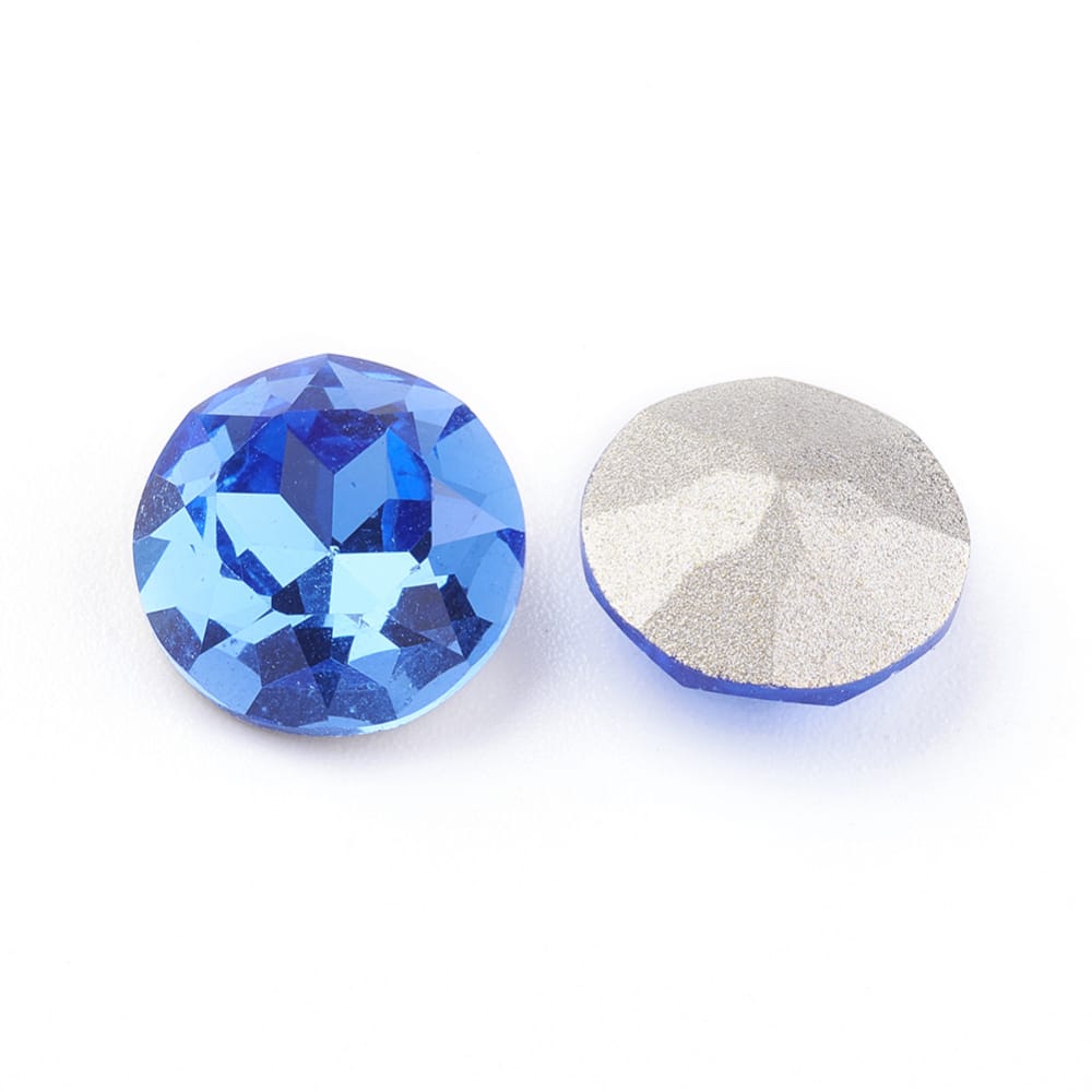 GC016 - 10 pcs Glass Vitrail Iridescent Faceted Rhinestone Cabochons - Plated Pointed Back - Blue - Grade A - 8mm