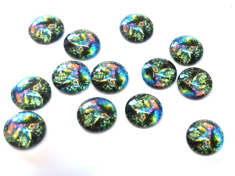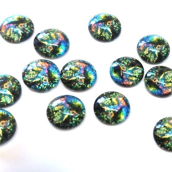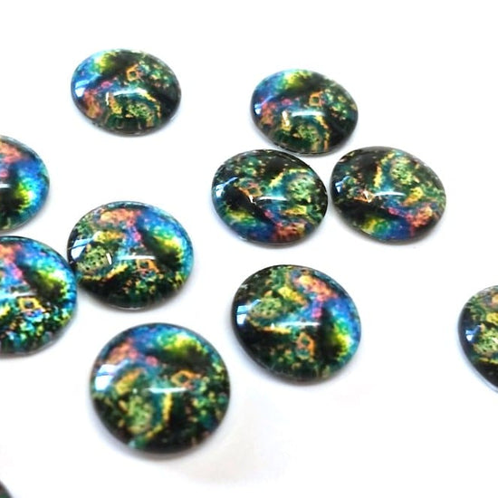 GT022 - 10 pcs Circle Abstract Glass Round Dome Seals Tiles Cabochons - 12mm - Blue Green Multicolor