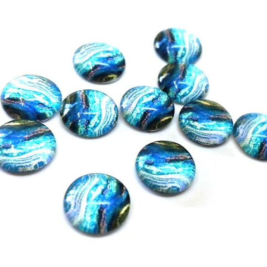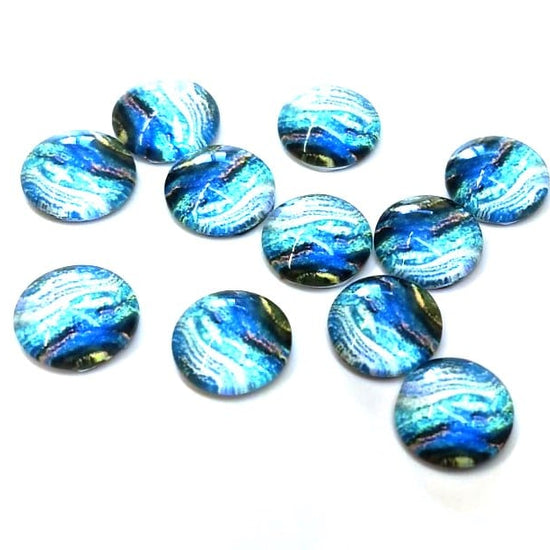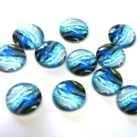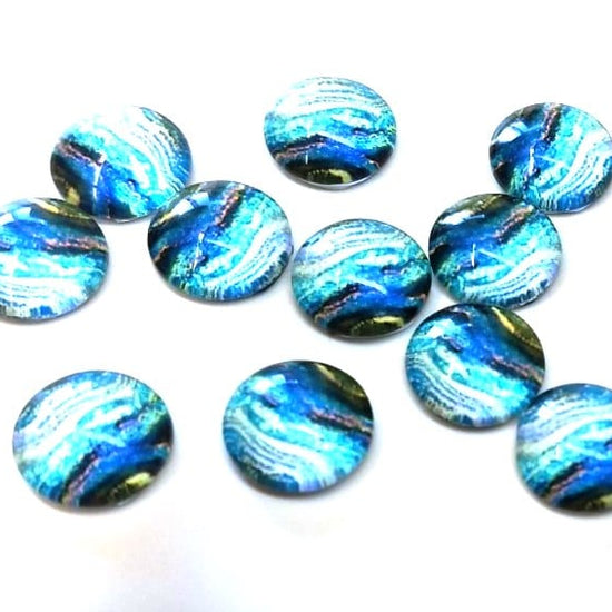 GT026 - 10 pcs Circle Abstract Glass Round Dome Seals Tiles Cabochons - 12mm - Blue Teal Multicolor