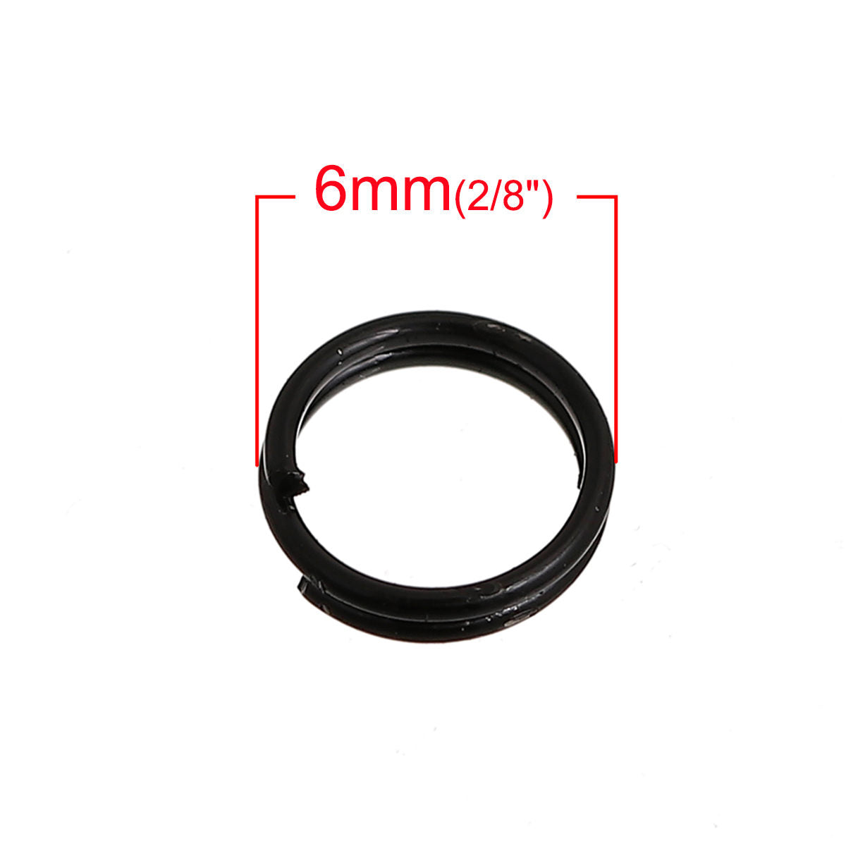 J033B - 1000 pcs Double Rings - Black Plated Split Open Jump Rings - 6mm - 21 Gauge (0.7mm Thick)