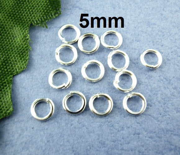 J034 - 100 pcs Silver Plated Open Jump Rings - 5mm - 21 Gauge