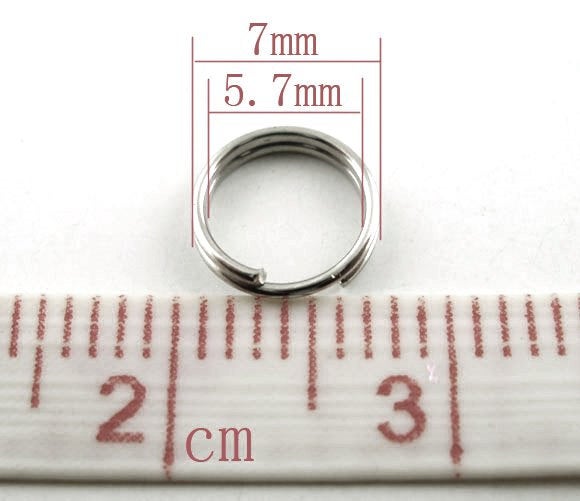 J048 - 100 pcs Double Rings - Silver Tone Open Jump Split Rings - 7mm - 22 Gauge