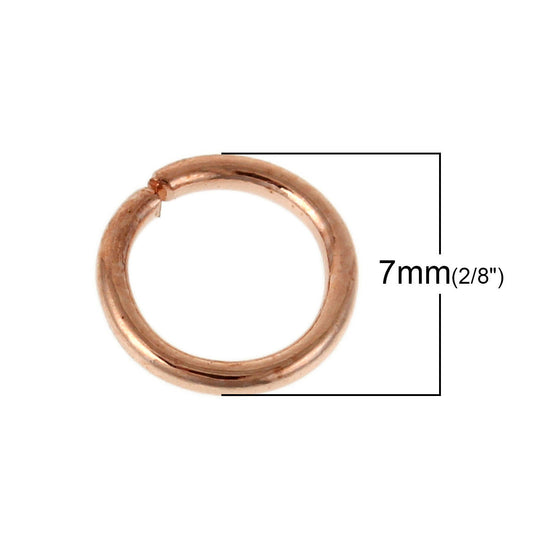 J059 - 100 pcs Rose Gold Plated Open Jump Rings - 7mm - 18 Gauge (1mm Thick)