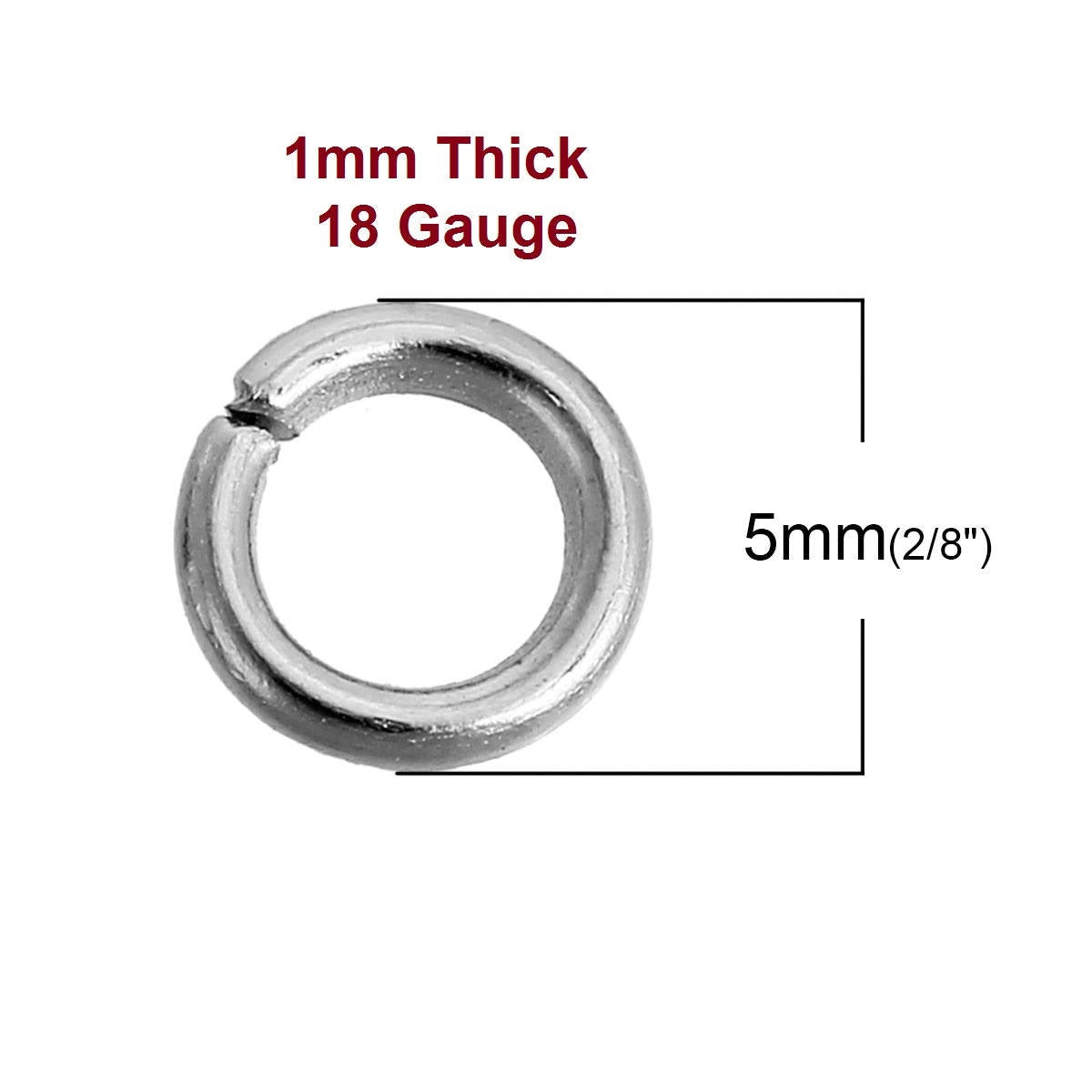 J203A - 100 pcs Silver Tone Open Jump Rings - 5mm - 18 Gauge (1mm Thick)