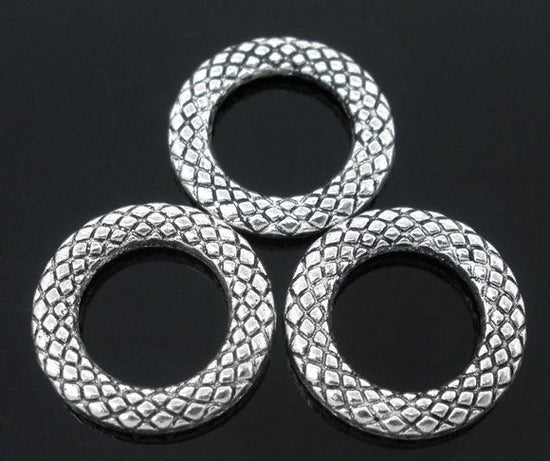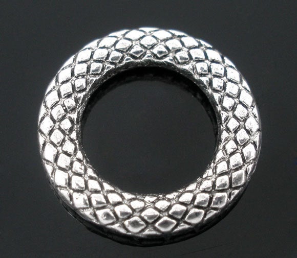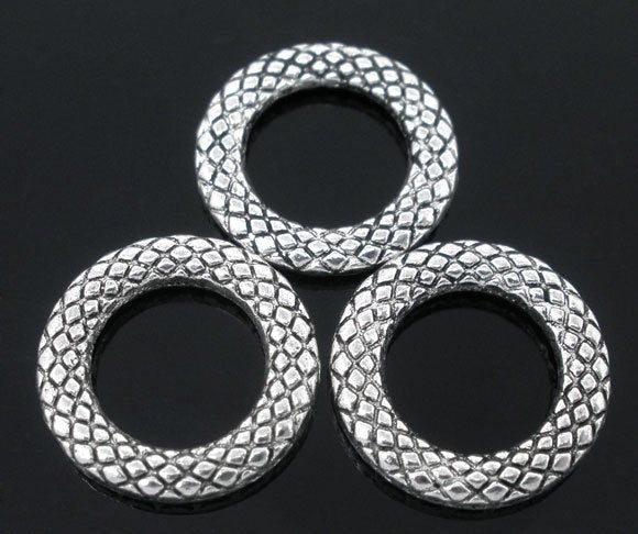 Antique Silver Carved Connector Soldered Closed Jump Rings – Lattice Pattern