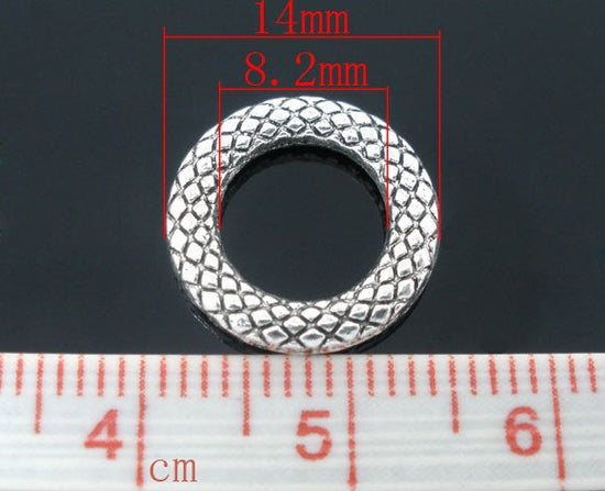 J192 - 50 pcs. Antique Silver Carved Connector Soldered Closed Jump Rings - 14mm - 2mm thick - Lattice Pattern