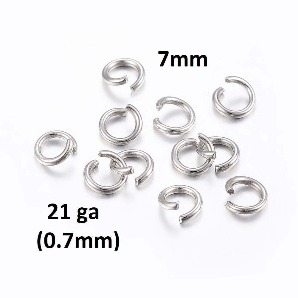 J313A - 100 pcs 304 Stainless Steel Silver Tone Open Jump Rings 7mm - 21 Gauge (0.7mm Thick) - Tarnish Resistant!