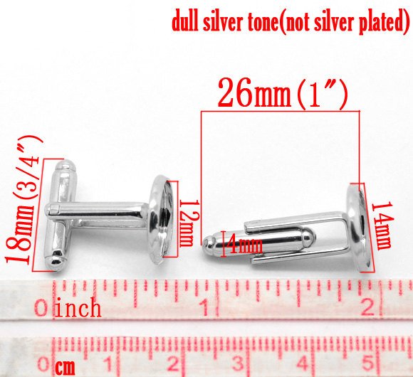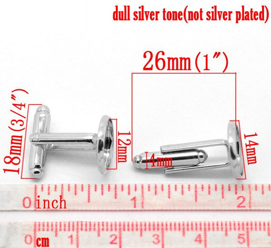 CU023 - Lot of 10 Silver Tone Cuff Links (5 pairs) - 12mm Glue Pad Bezel Setting