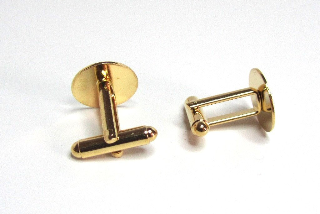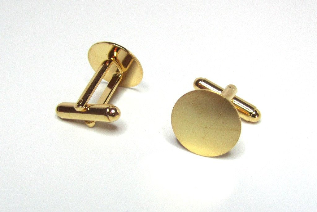 CU022 - Lot of 12 Gold Plated Cuff Links (6 pairs) - 15mm Glue Pad