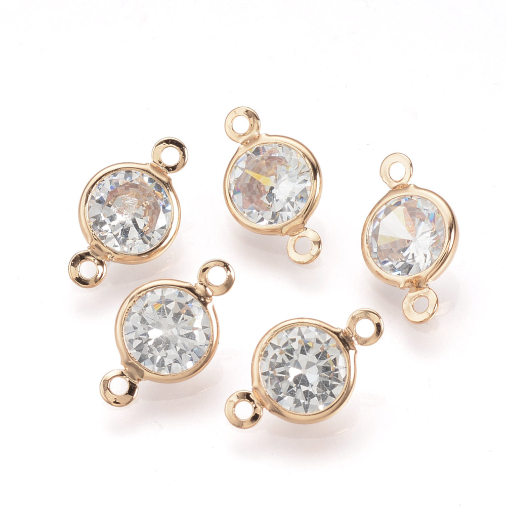 MP0069 - 10 pcs. KC Gold Tone Cubic Zirconia (CZ) Connectors - 15mm x 9mm - Hole Size: 1mm