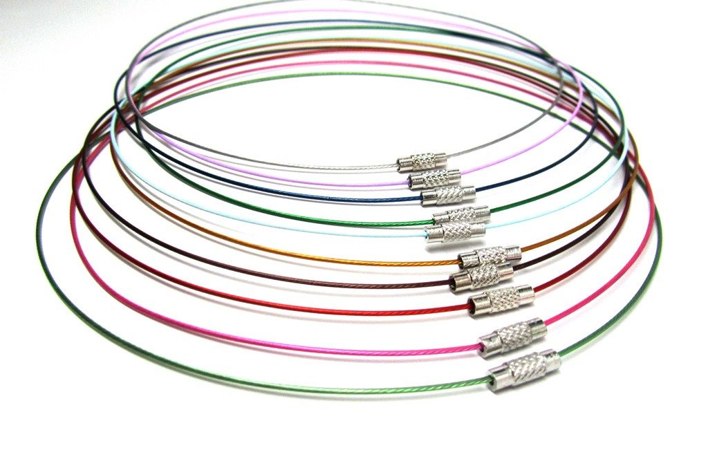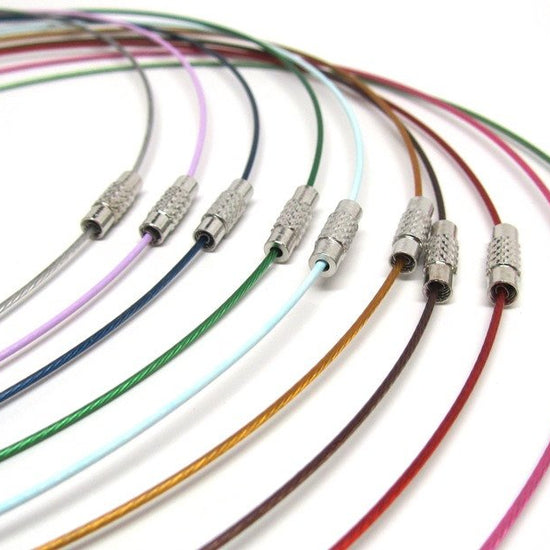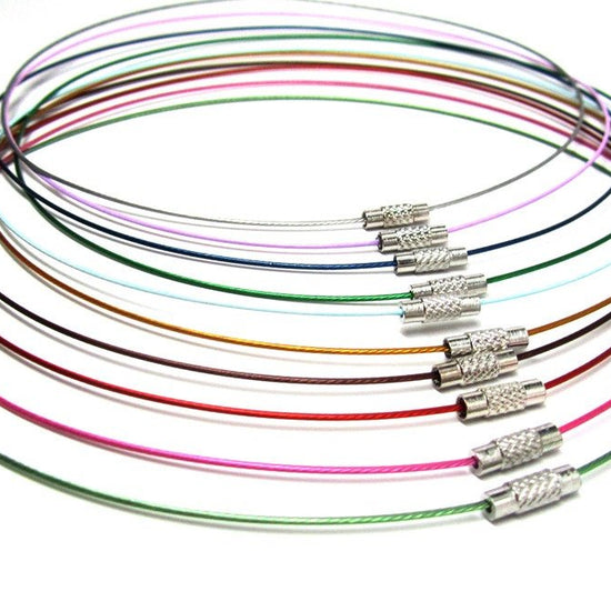 N012A - 50 pcs. Memory Wire Choker Coated Necklaces with Silver Screw Clasp - 18 inch - 1mm - THICK - 10 Colors