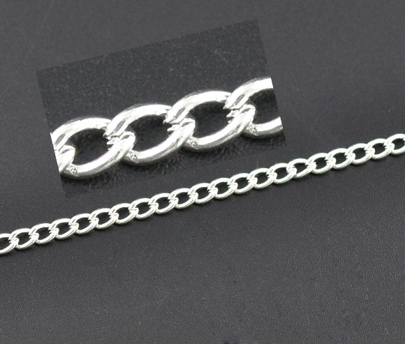 N023 - 10M (32.8 Ft) - Silver Plated Open Link Chain - 5mm x 3.3mm