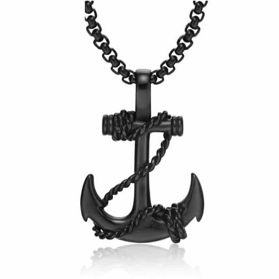 N093 - 1 pc. Titanium Steel Black Chain Link Necklace - 316L Steel Anchor Rope Cross - 55cm (21.65")