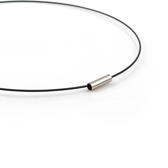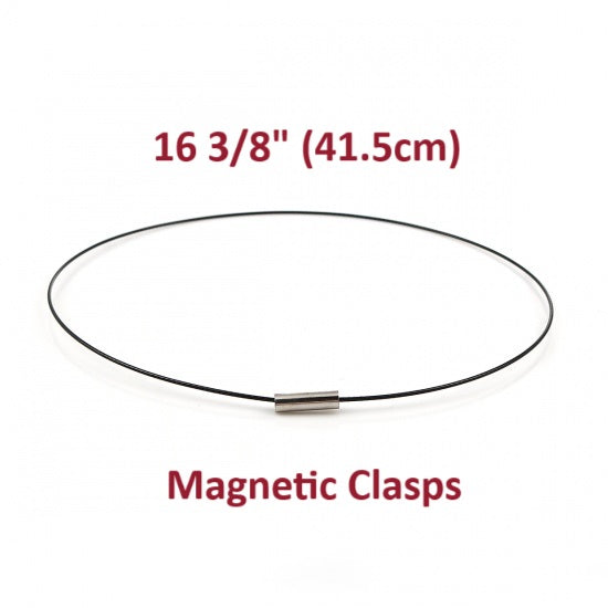 N106 - 10 pcs. Copper Based Memory Wire Choker Necklaces with Silver Magnetic Clasp - 16 3/8 inch - 1mm - THICK - Black - HIGH QUALITY - 41.5 cm