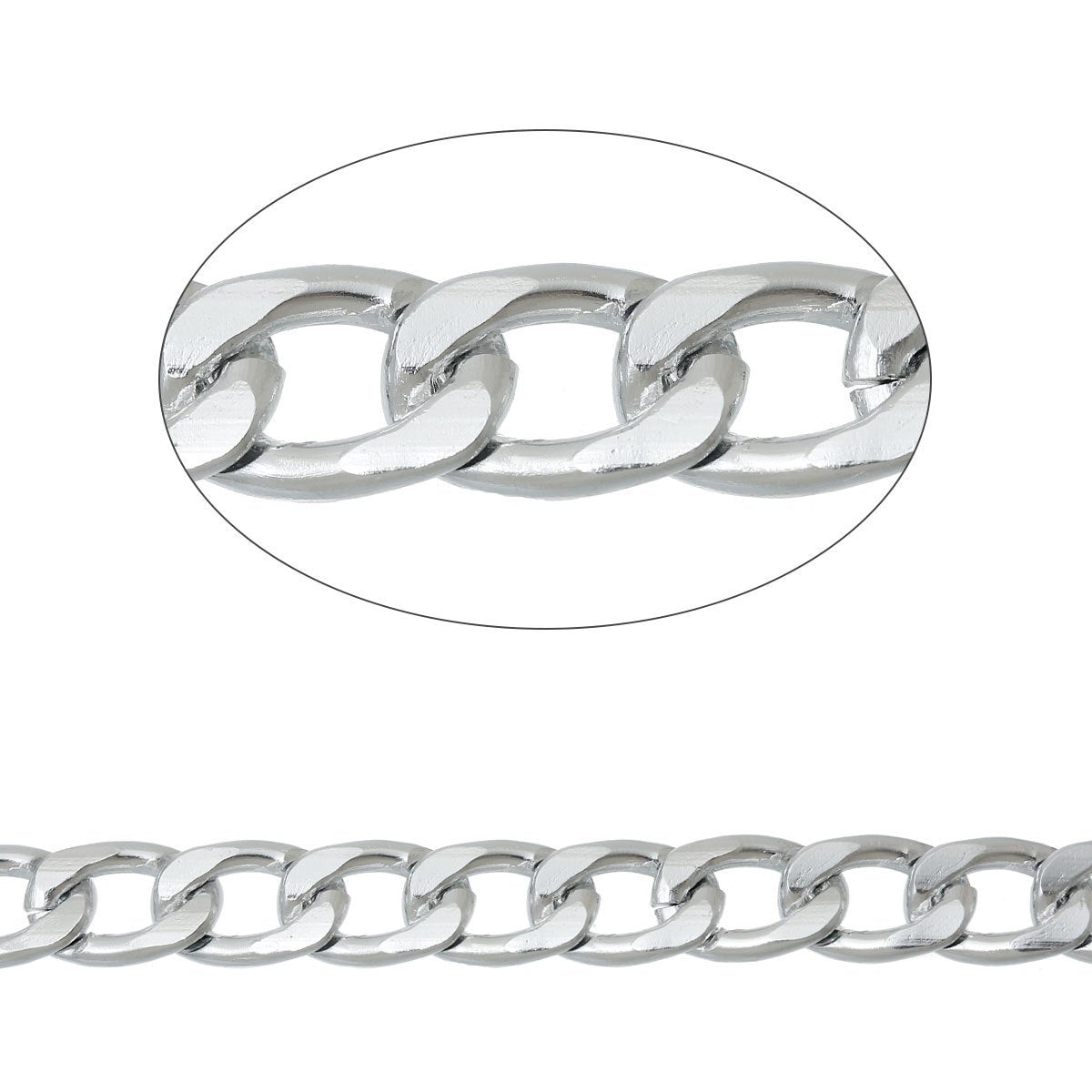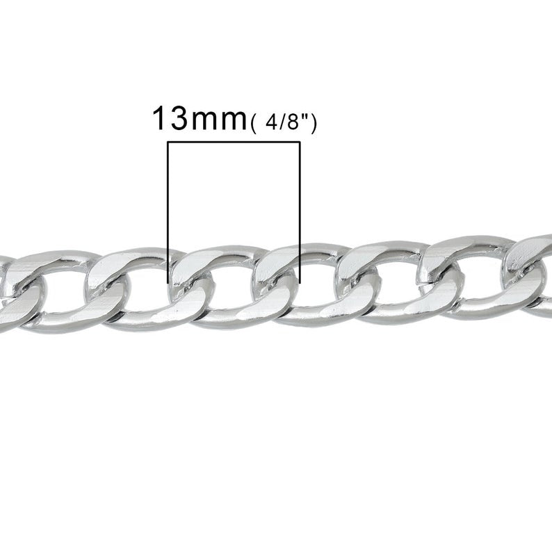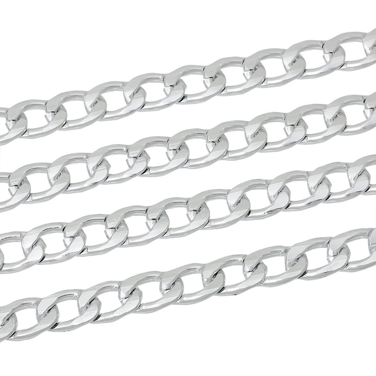 Silver Tone Link Curved Chain – Beveled – Made of Aluminum!