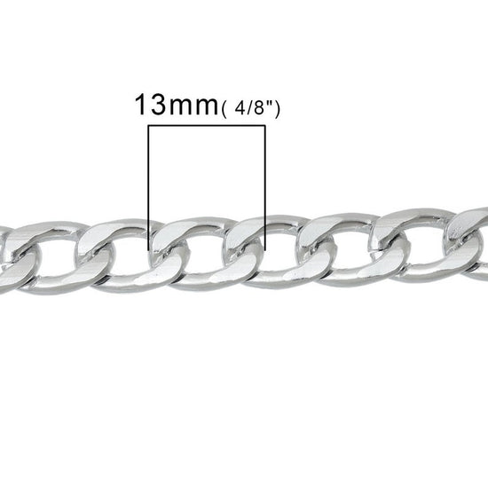 N112 - 2M (6.56 Ft) - Silver Tone Link Curved Chain - 13x9mm - Aluminum - Beveled - Flat