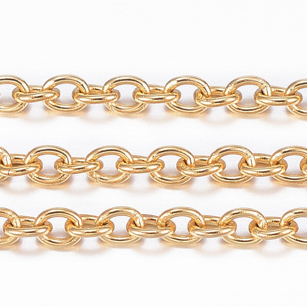N167 - 1M (3.28 Ft) - 304 Stainless Steel Gold Plated Cable Soldered Chain - 2.5mm x 2mm Links - 0.5mm Thick - Hypoallergenic