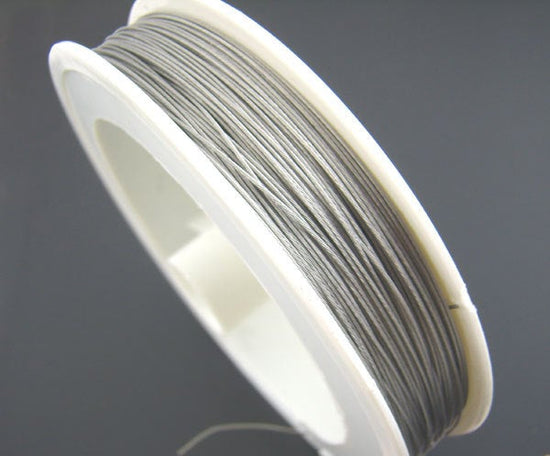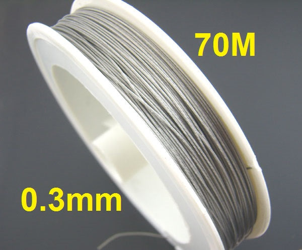 N161 - 1 Roll - 70M - Antique Silver Grey Gray Tiger Tail Cord - 0.3mm - Steel Wire