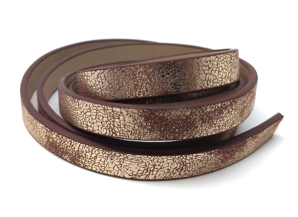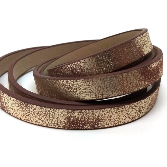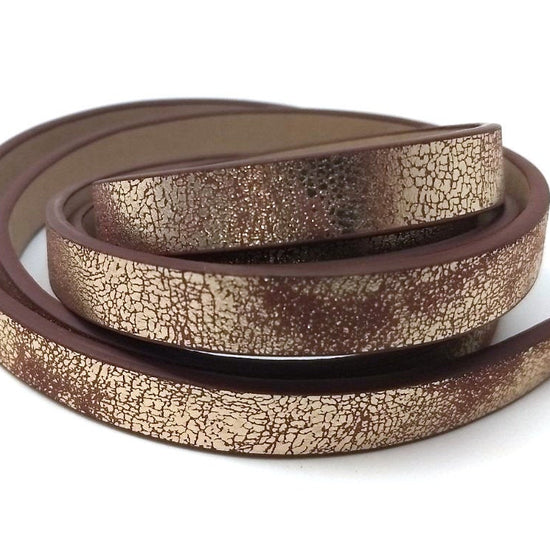 N177 - 1M (3.28 FT) - Brown and Gold FLAT Faux Leather Jewelry Cord - 10mm Wide - DISTRESSED