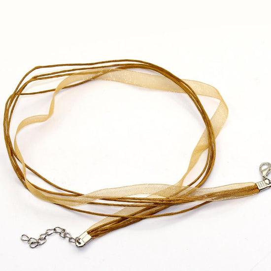 N192 - 15 pcs. Khaki Cream Beige Organza Ribbon Waxen Cord Necklaces with Lobster Clasp - 17 inch (43 cm) - Claw Clasp