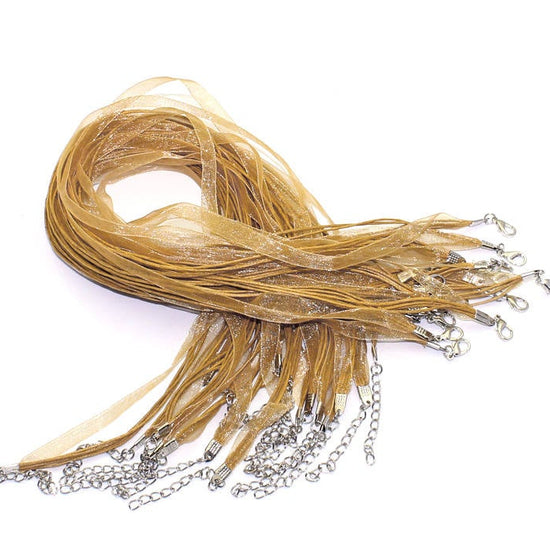 Brand NEW 15 Khaki Organza Ribbon Cord Necklaces – Wonderful for your glass tiles, scrabble tiles, glass pendants or anything that you can think of :)!