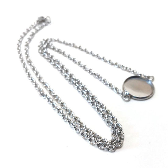 N194 - 3 pcs. 304 Stainless Steel Silver Tone Chain Necklaces - 16" (40.7cm) - 12mm Bezel - Tarnish Resistant!