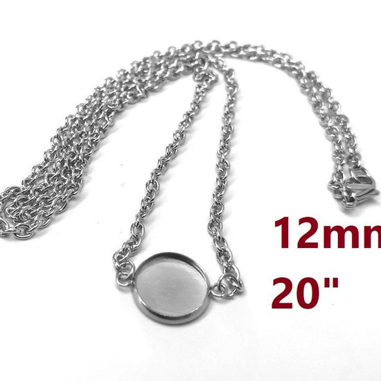 N199 - 3 pcs. 304 Stainless Steel Silver Tone Chain Necklaces - 20" (50.8cm) - 12mm Bezel - Tarnish Resistant!