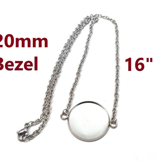 N203 - 3 pcs. 304 Stainless Steel Silver Tone Chain Necklaces - 16" (40.7cm) - 20mm Bezel - Tarnish Resistant!