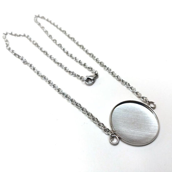 N214 - 3 pcs. 304 Stainless Steel Silver Tone Chain Necklaces - 24" (61cm) - 18mm Bezel - Tarnish Resistant!