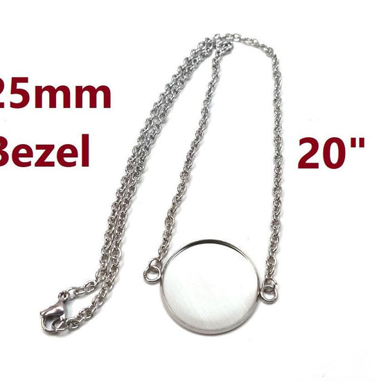 N215 - 3 pcs. 304 Stainless Steel Silver Tone Chain Necklaces - 20" (50.8cm) - 25mm Bezel - Tarnish Resistant!
