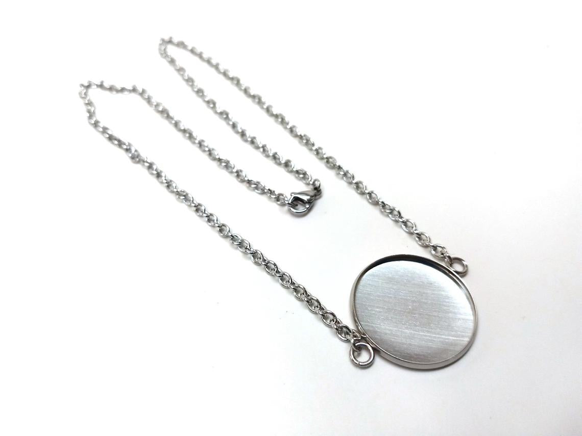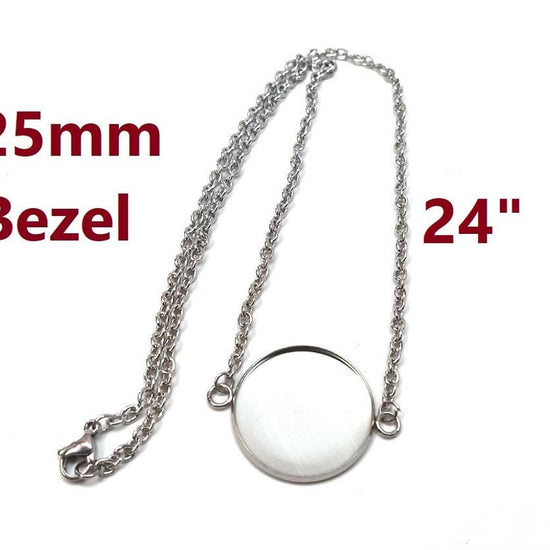 N217 - 3 pcs. 304 Stainless Steel Silver Tone Chain Necklaces - 24" (61cm) - 25mm Bezel - Tarnish Resistant!