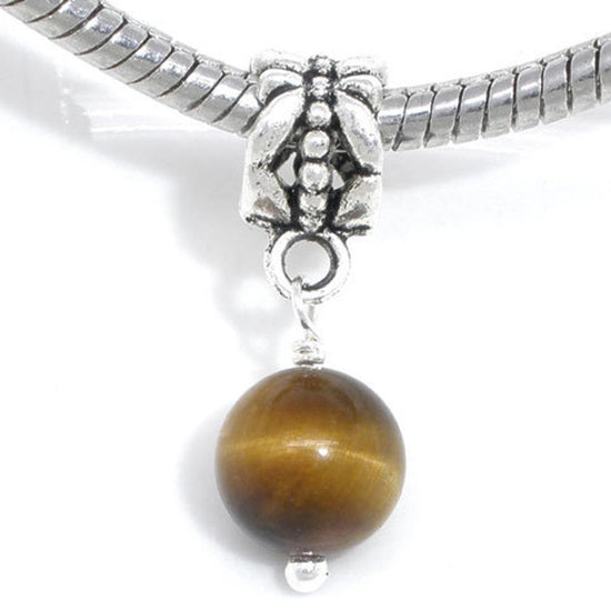Antique Silver Amber Tone Round Dangle Charm Beads