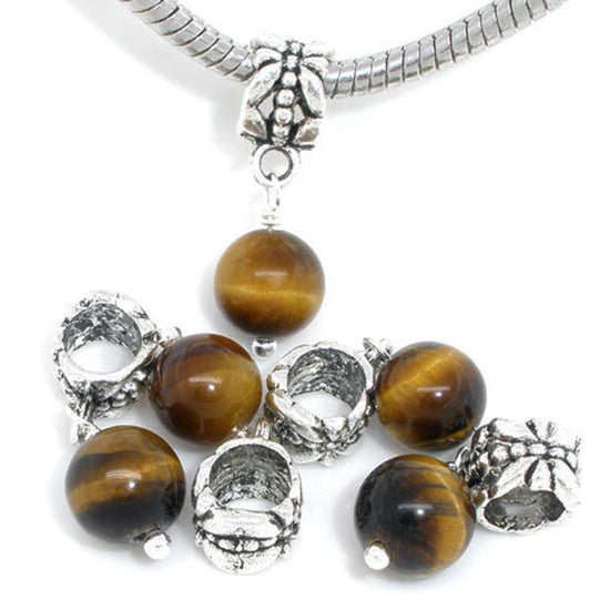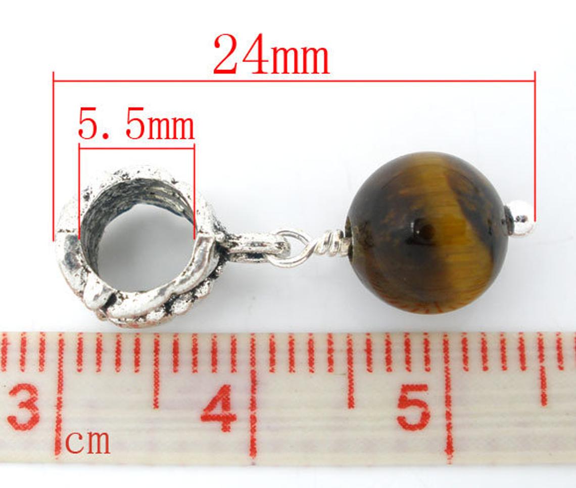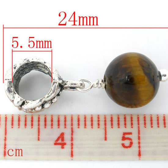 P2087 - 8 pcs Antique Silver Amber Tone Round Dangle Charm Beads - 24mm x 9mm- Hole Size: 5.5mm - Fits Paracord and European Cords!