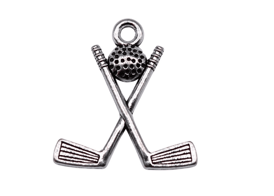 P372 - 25 pcs. Antique Silver Tone Golf Club Stick with Ball Charms Pendants - 20mm x 18mm - Hole Size: 2mm