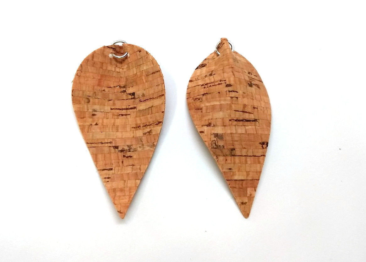 Brand NEW Original Cork Style Brown Faux Leather Dangles – Pinch Leaf – Silver Tone Jump Ring – Perfect for Statement Earrings!