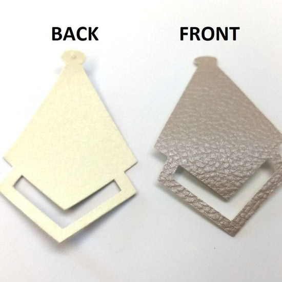 P394 -10 pcs. Metallic Beige Tan Faux Leather Textured Dangle Charms Pendants - Diamond Teardrop - 58mm (2.3") -Great for Light Earrings & Dangles