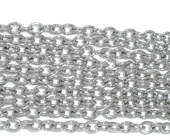 P590 - 10M (32.8 Ft) - Silver Tone Chain Link - 5x3.5mm - 5mm x 3.5mm - Thickness: 0.9mm (19 Gauge)