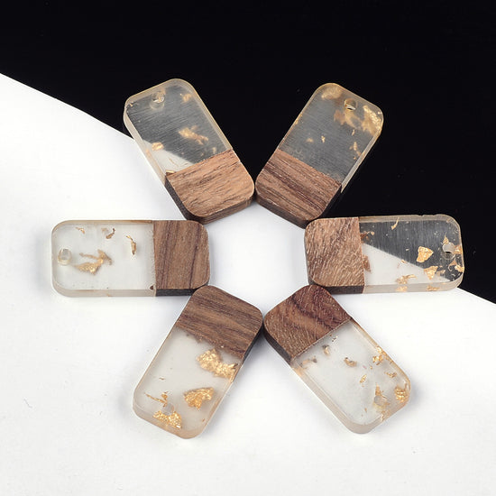 P784 - 4 pcs. Clear and Gold Foil Resin and Wood Rectangle Flat Pendant - 27mm x 13mm - (1.06" x 0.51")