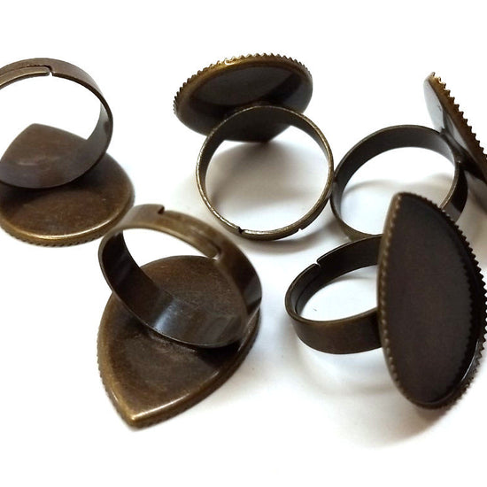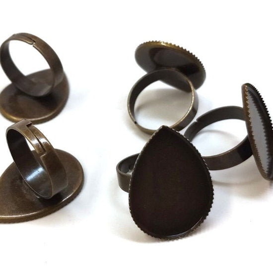 RB033 - 10 pcs. Antique Bronze ADJUSTABLE Cabochon Setting Bezel RING bases settings - Ring Size 8 US - Glue Pad - 25mm x 18mm - Teardrop - 25x18mm