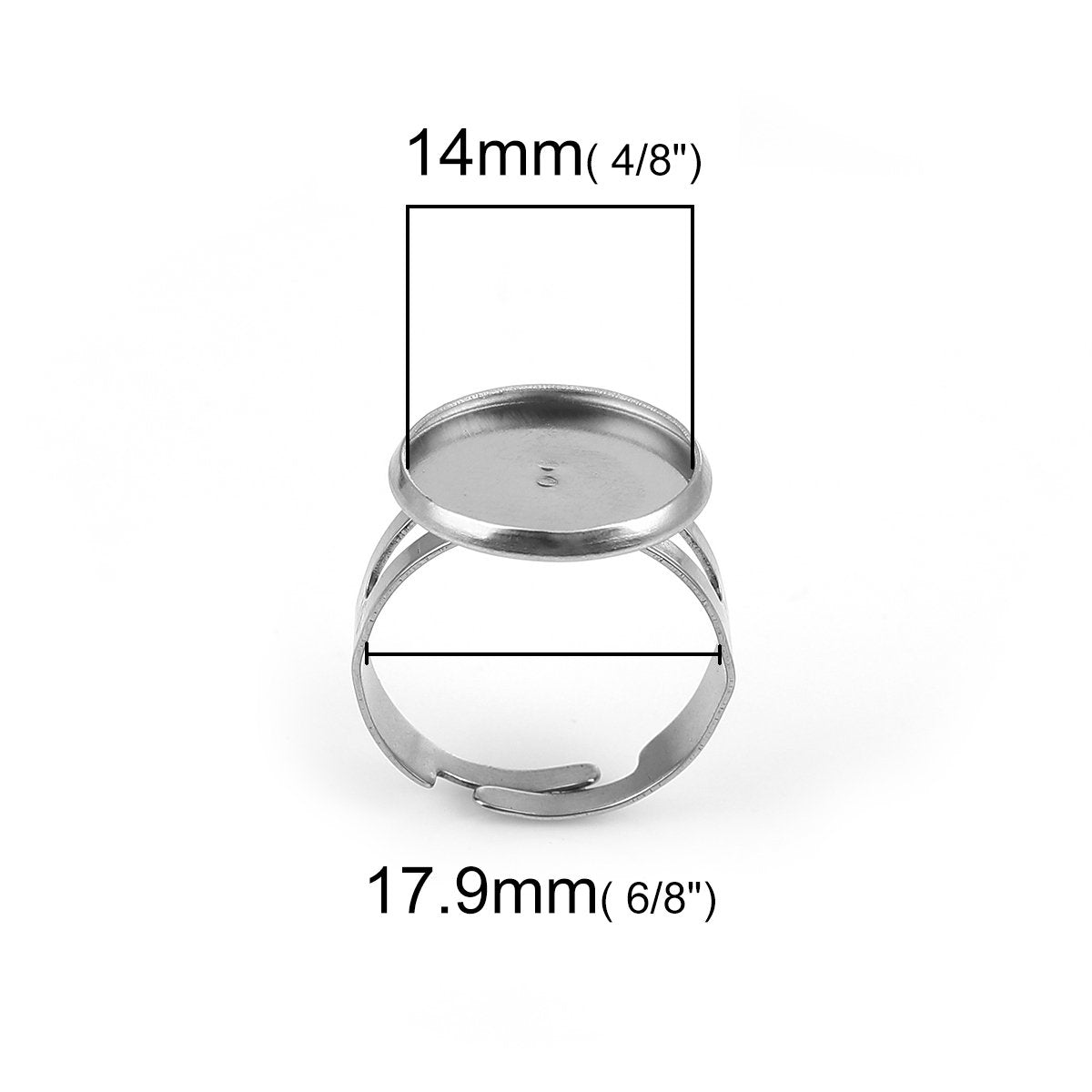 RB040 - 5 pcs. 304 Stainless Steel Silver Tone ADJUSTABLE Cabochon Setting Bezel RING bases settings - Ring Size 7.75 US - Glue Pad 14mm