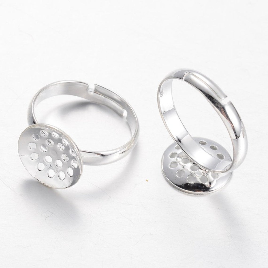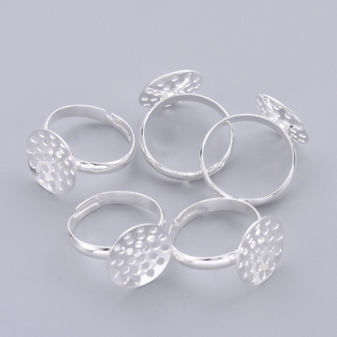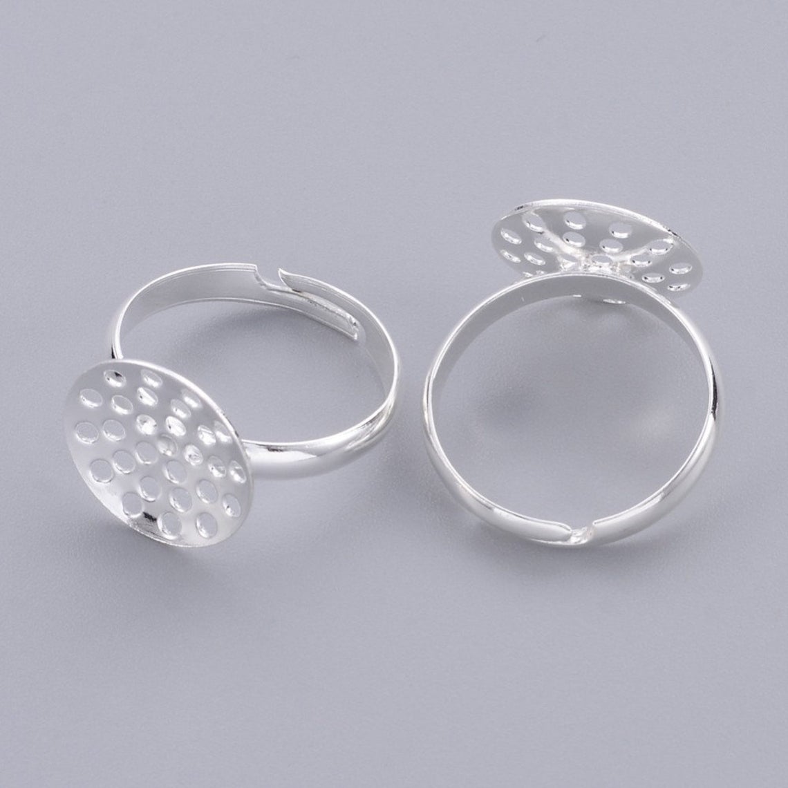 RB045 - 10 pcs. Silver Plated ADJUSTABLE RING BASES - Glue Pad 14mm - 17mm (Ring Size 7)