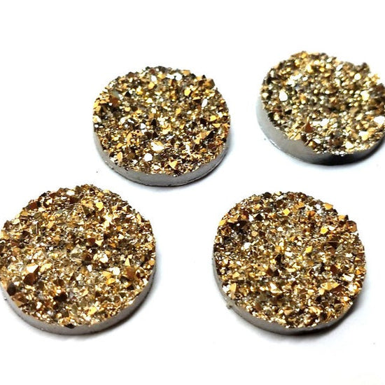 RC0006 - 10 pcs Druzy Resin Embellishment Cabochons Gold - 20mm - Coin Style