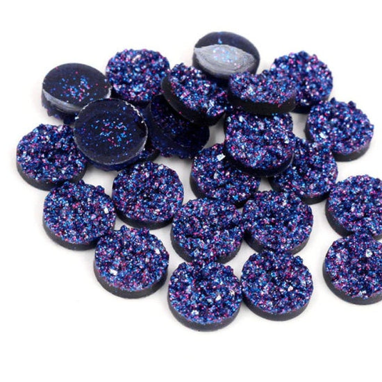 RC0012 - 10 pcs Druzy Resin Embellishment Cabochons Purple with Pink and Blue Specs - 12mm