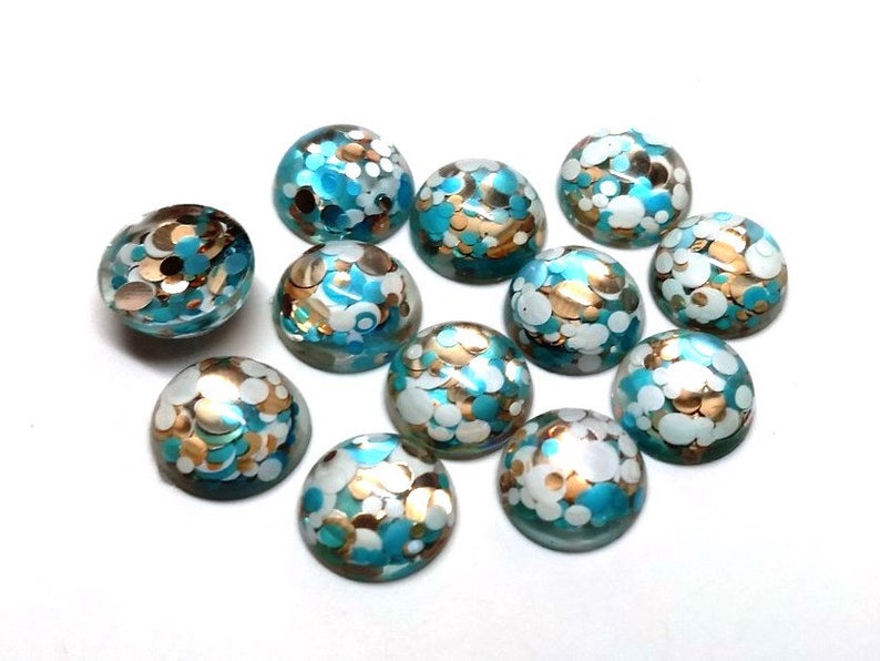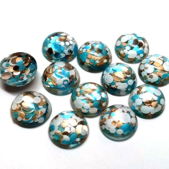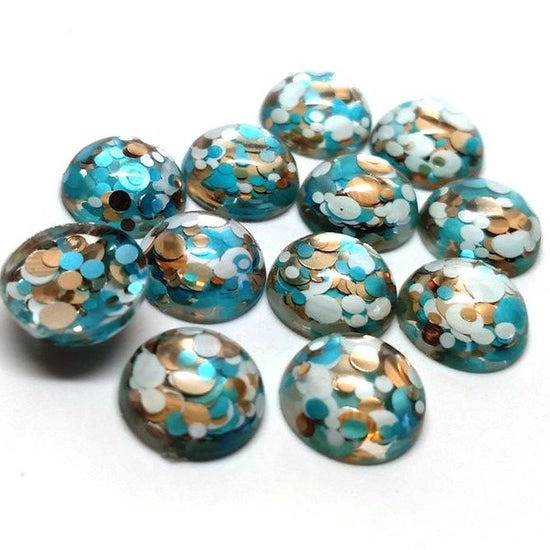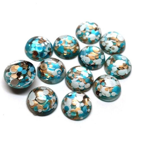 RC0022 - 10 pcs Druzy Resin Embellishment Cabochons - 12mm - Glitter Style - Blue, Gold and White
