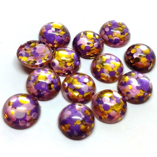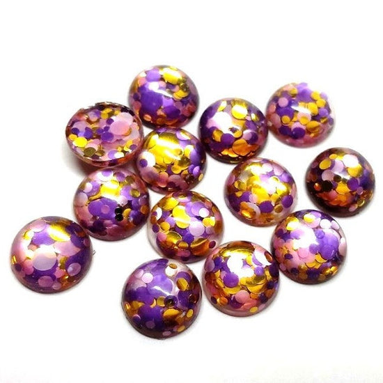 RC0023 - 10 pcs Druzy Resin Embellishment Cabochons - 12mm - Glitter Style - Purple, Gold and Pink