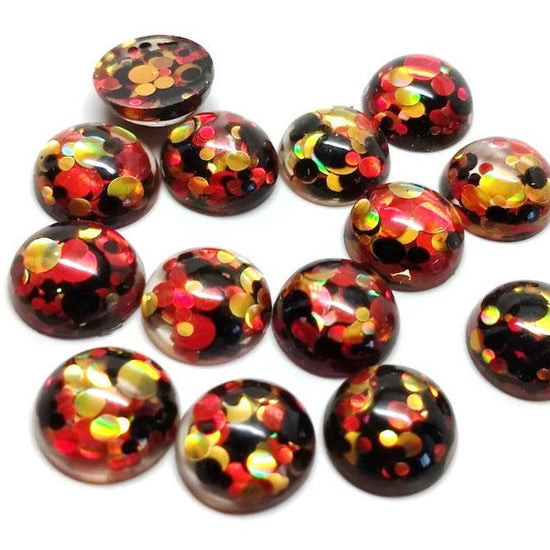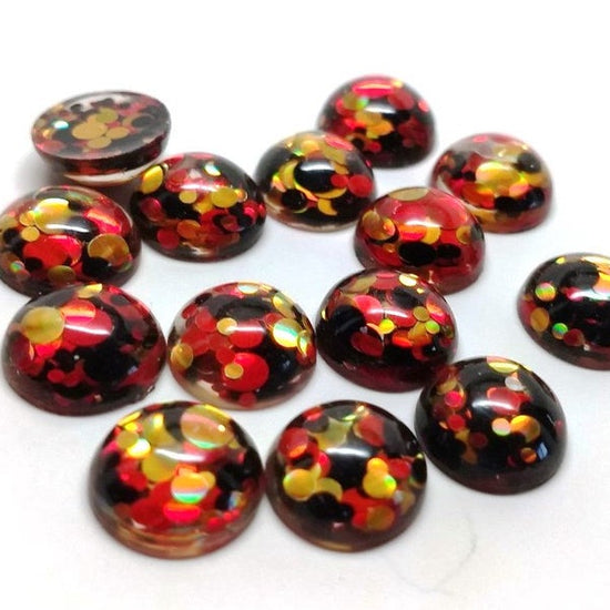 RC0024 - 10 pcs Druzy Resin Embellishment Cabochons - 12mm - Glitter Style - Black, Red and Gold