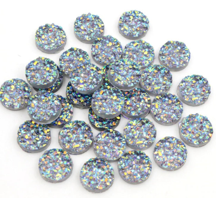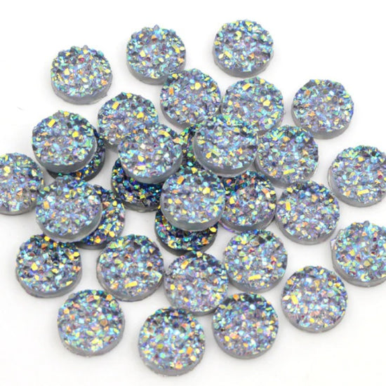 RC0048 - 10 pcs Druzy Resin Embellishment Cabochons Gray Multicolor - 12mm - Circle