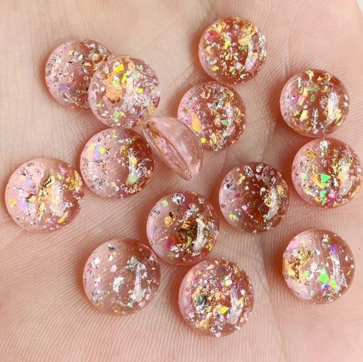 RC0064 - 10 pcs Resin Round Embellishment Circle Cabochons Crackle Metal Foil - Pink, Gold - 12mm